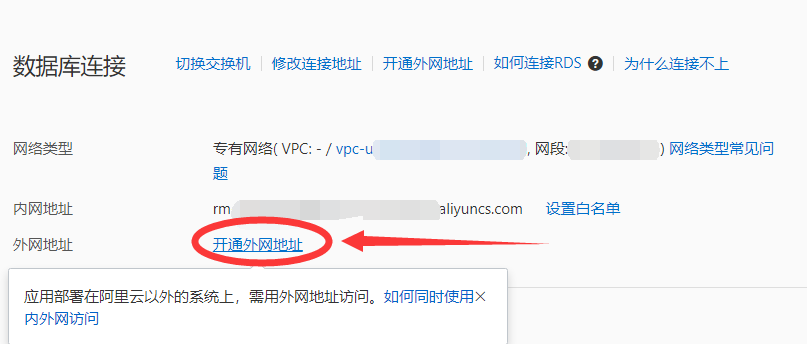 2、开通外网地址,确保可以通过公网IP访问数据库;