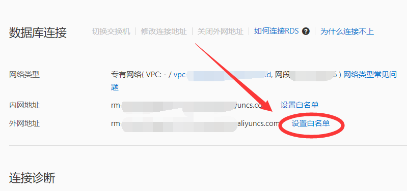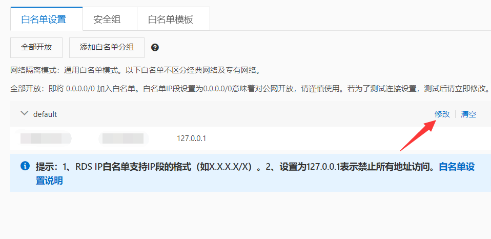 3、设置白名单,确保本地IP地址可以访问数据库