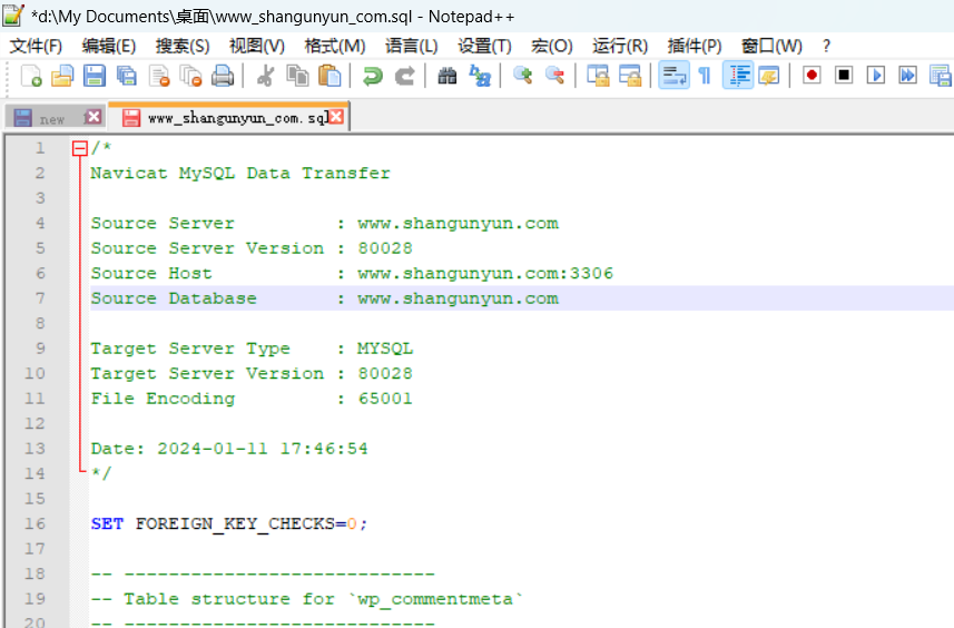 10、查看数据库的格式,开始是表信息,后面是wp_commentmet表格,即为正常保存到本地了,