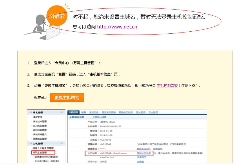 1. 要设置域名才可以登陆主机控制面板。那么我们就去设置我们的域名。