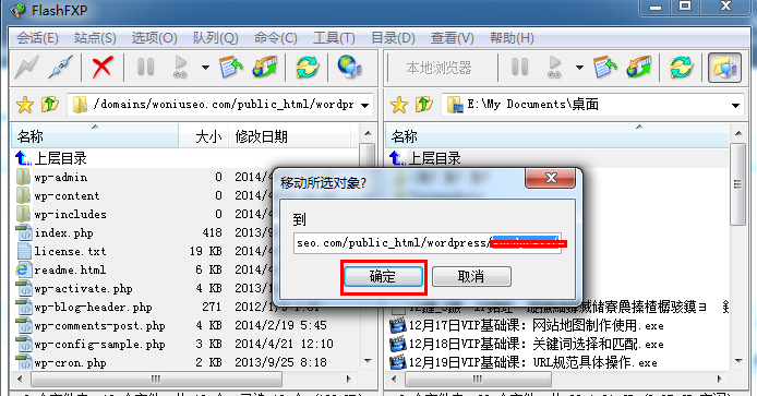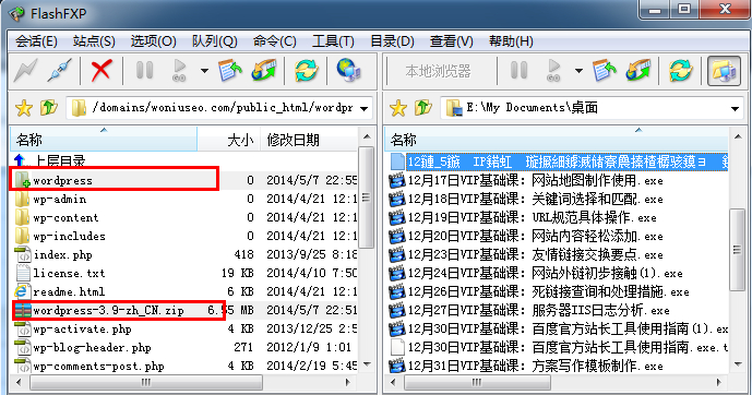 1. 打开网站的FTP,将Wordpress 拖到网站空间里面。