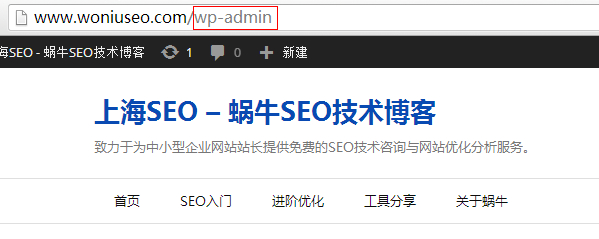 5. 然后访问我们的网站的首页,如果你的网址上http://www.woniuseo.com/,那么,你可以直接访问这个首页(因为蜗牛用的是自己博客的根目录演示,因此只能在根目录下面的wordpress目录下面操作。)