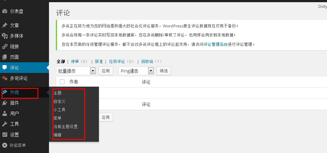 我们可以通过评论菜单管理Wordpress上面的评价。