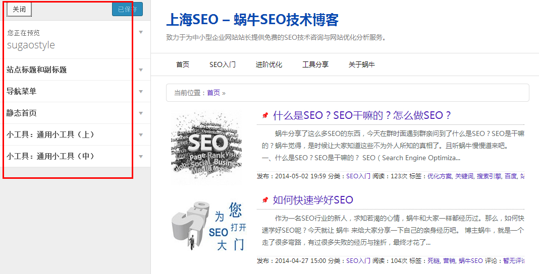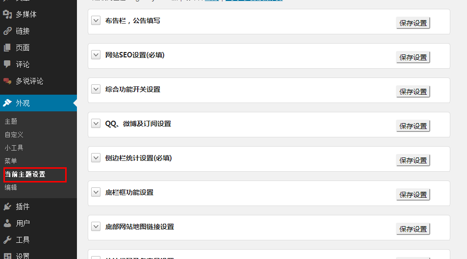 根据不同的主题,会有不同的设置,当然,有些主题下没有这个当前主题设置,如果的话,大家可以根据项目的不同进行相应的设置。如有不明白或不清楚,可以直接访问  蜗牛SEO博客  ,或者加入  蜗牛SEO  的QQ群,你将得到快捷的技术支持。