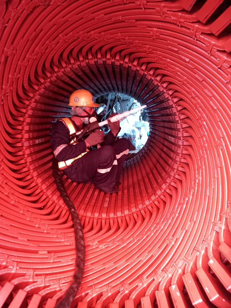 5.  船舶行业:船身、入水阀、冷凝器清理,去油污、去油漆,比一般用高压水射流清洗更干净。